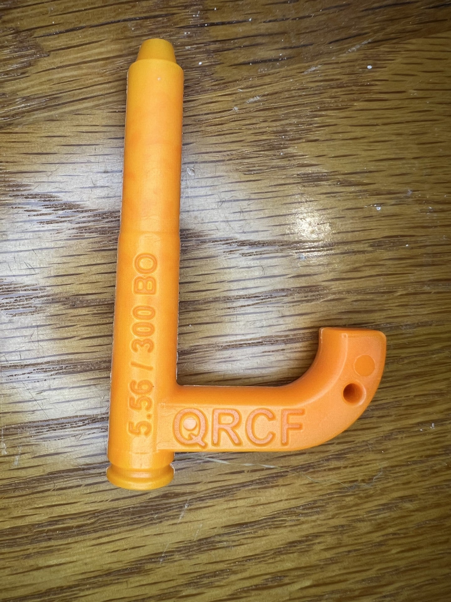 The Quick Reaction Chamber Flag (QRCF) is an ejectable chamber flag made specifically for the AR-15 chambered in 5.56/.223/300 Blackout. It is designed to allow the user to easily see that the firearm does not have a live round in the chamber providing peace of mind for anyone seeing or handling the firearm while allowing the user to quickly eject the chamber flag and load a live round if a loaded magazine is in the firearm.